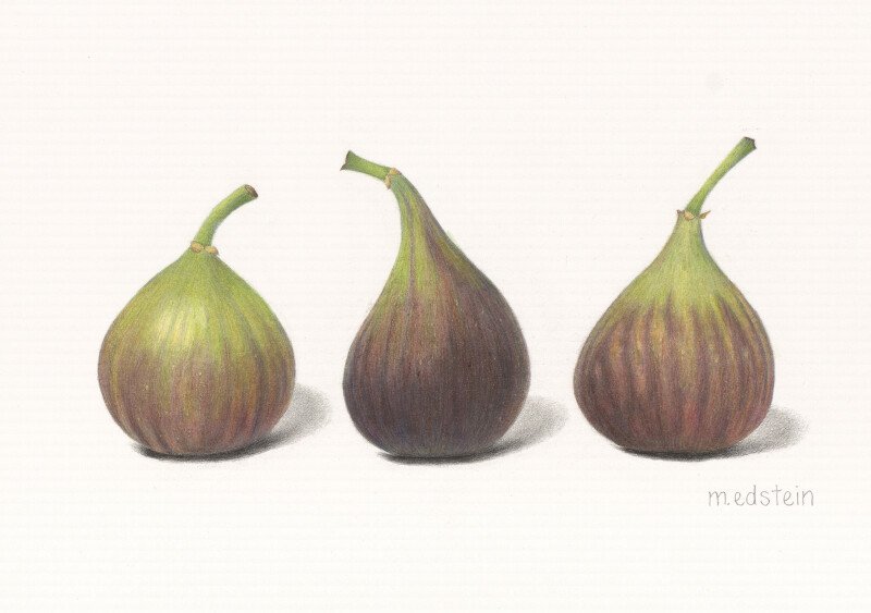 Melinda Edstein - Three Little Figs. 22x46cm.