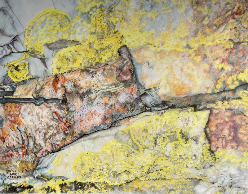 Andrea Placer - World on a Rock Face. 27.94 x 35.56cm.