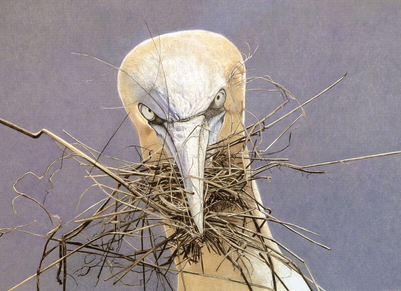 Angela Garrod - Gannet - Leave my Twigs Alone. 50 x 40 cm.Ref. Stephen Shaw