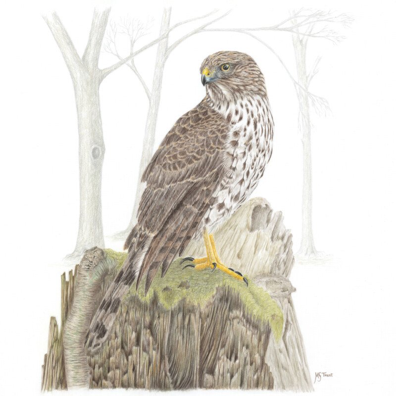 Margaret Trent - The Messenger: Juvenile Cooper's Hawk. 32 x 32cm.Ref. Colleen Parker (Bird only)