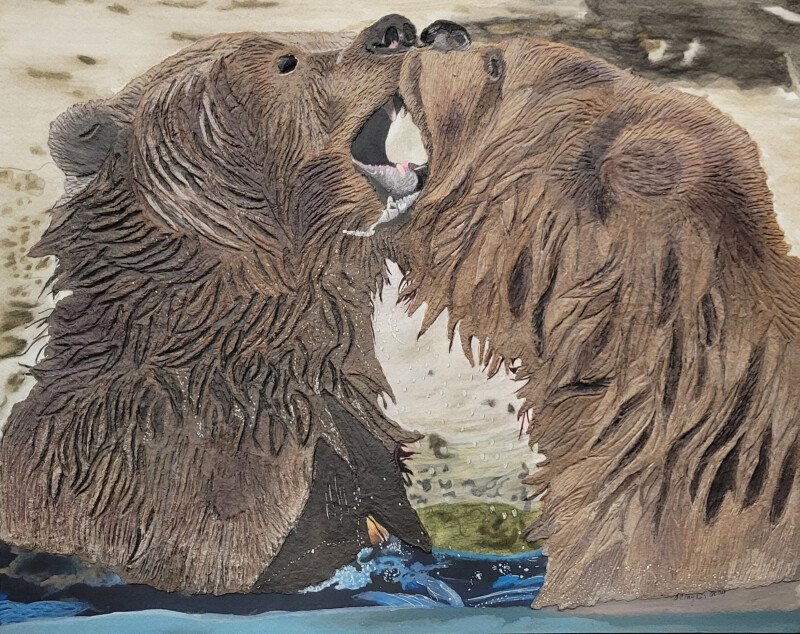 Tracey Chaykin - Grappling Grizzlies. 40.6 x 50.8cm.