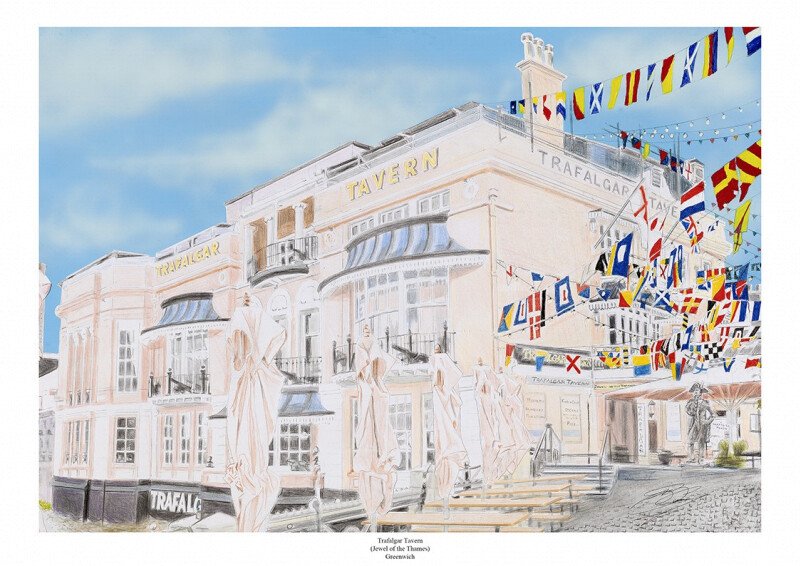 Brian Casey - The Trafalgar Tavern (the Jewel of the Thames). 16.5x23.4cm.