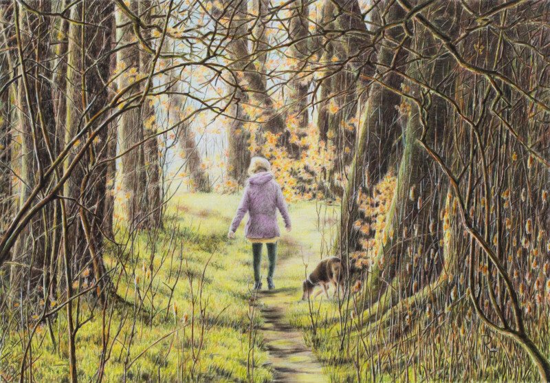 Ronald Firla - Auf dem Teichdamm. 21x30cm.