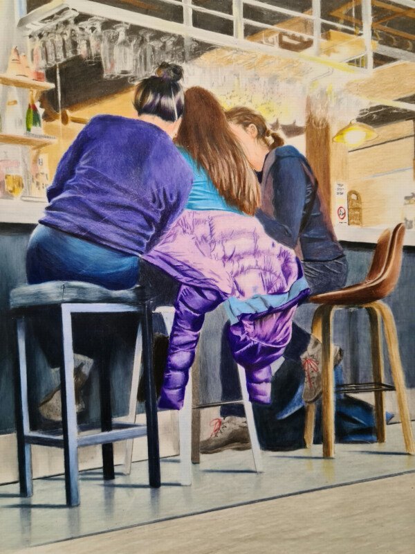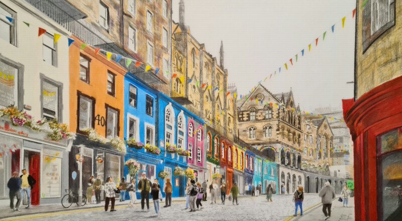 Vincent Stroud - Grassmarket Conversation. 40 x 60cm.