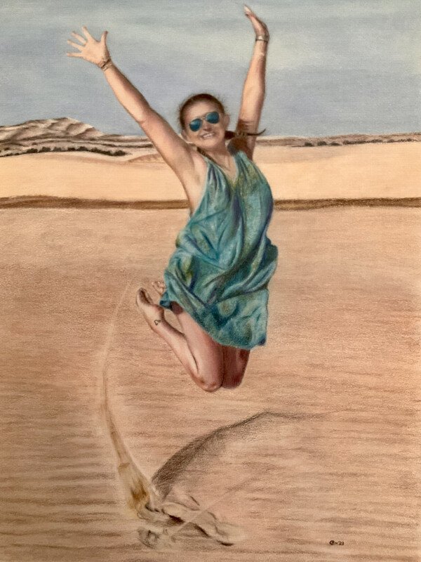 Christine Neale - Jumping for Joy. 40 x 28cm.