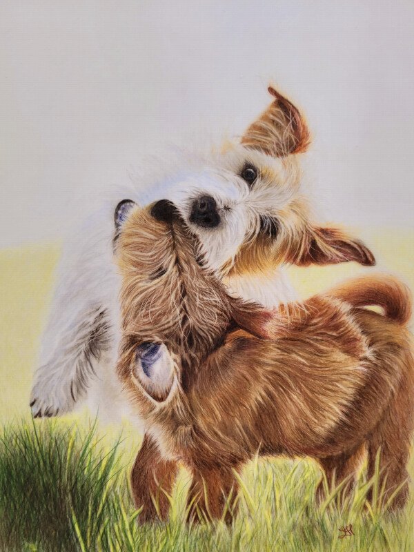 Donna Hyde - Tumbling Terriers. 28x21cm.