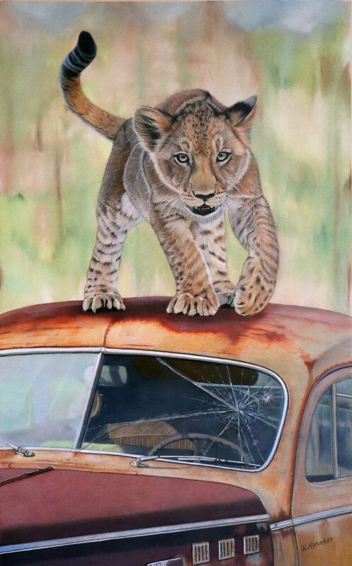 Nancy Honaker - Cat On a Hot Tin Roof. 64.8 X 39.4cm.