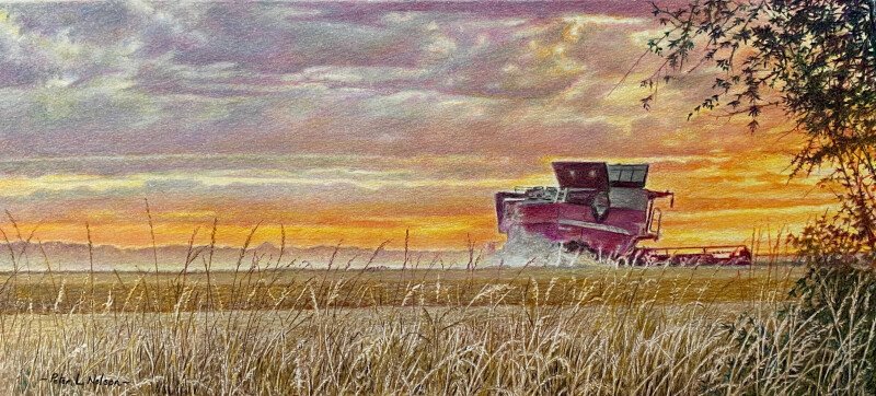 Peter Nelson - Evening Harvest. 18 x 38cm.