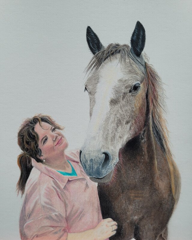 Cindy Valek Mottl - The Girl, the Groom, and the Horse. 51 x 36cm.